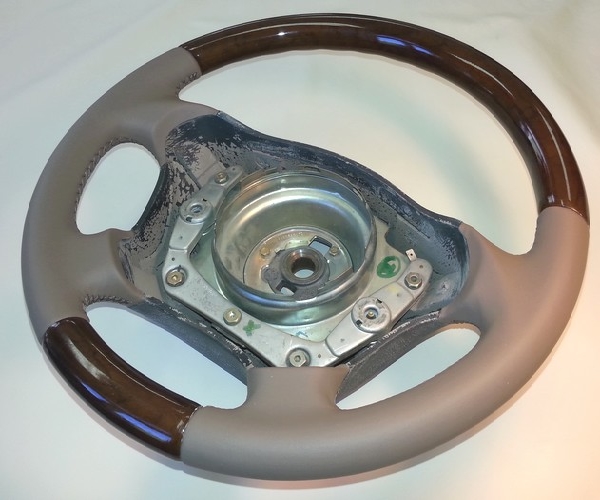 Wir bekommen immer wieder Anfragen, ob wir auch Holzlenkräder beziehen können. Auch das ist natürlich möglich. Nun denken viele Kunden, da braucht man ja nur die Hälfte an Material, dann sollte es auch dementsprechend günstiger sein. Das ist leider nicht richtig: ein Holzlenkrad ist mit einem deutlich höherem Arbeitsaufwand verknüpft, da das Leder an den Übergängen zum Holz perfekt angepaßt werden muss und die Lederflächen von der Höhe her sauber mit dem Holz übereinstimmen sollen. Daher berechnen wir hier den gleichen Preis wie bei einem komplett zu beziehendem Lenkrad.